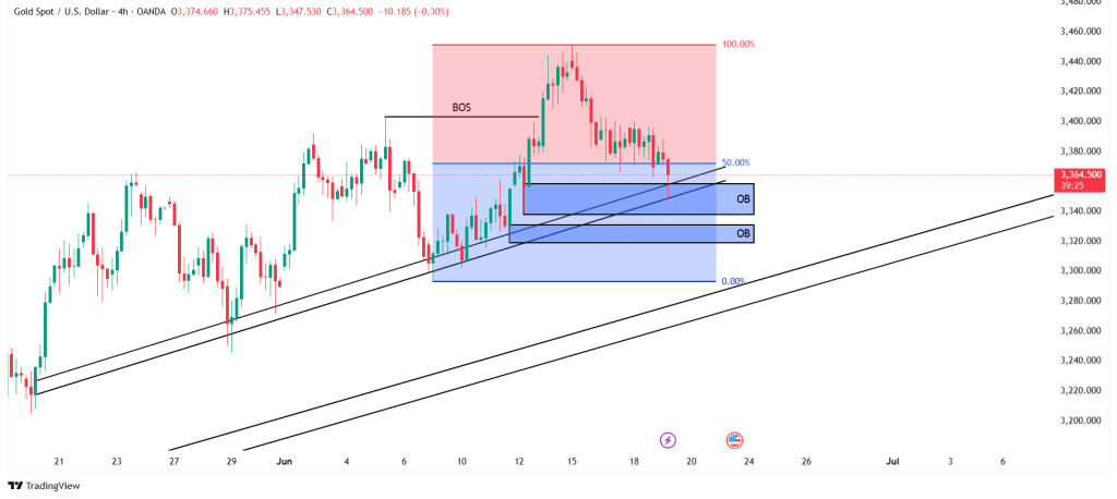 فنلاحظ ان السعر في منطقة التخفيض المناسب للتفكير بالشراء ونرى ايضا منطقة اوردر بلوك متوافق مع خط التريند الفرعي كما يوجد منطقة اوردر بلوك اقوى تحته ومتوافقة مع مستوى 78 فيبوناتشي بالاضافة الى ان السعر قد يسحب سيولة الاوردر بلوك الاول وسيولة خط الاتجاه ولكننا يمكننا ان نشتري من الاوردر بلوك الأول في حال تبين لنا أي سلوك صعودي على فريمات اصغر وتغير في اتجاه السعر للاعلى